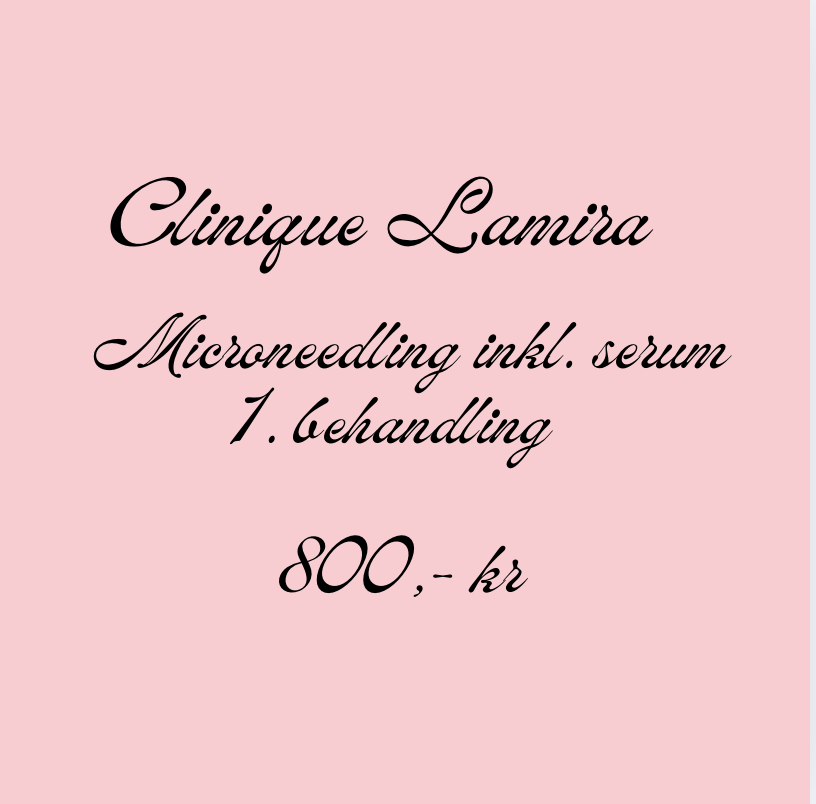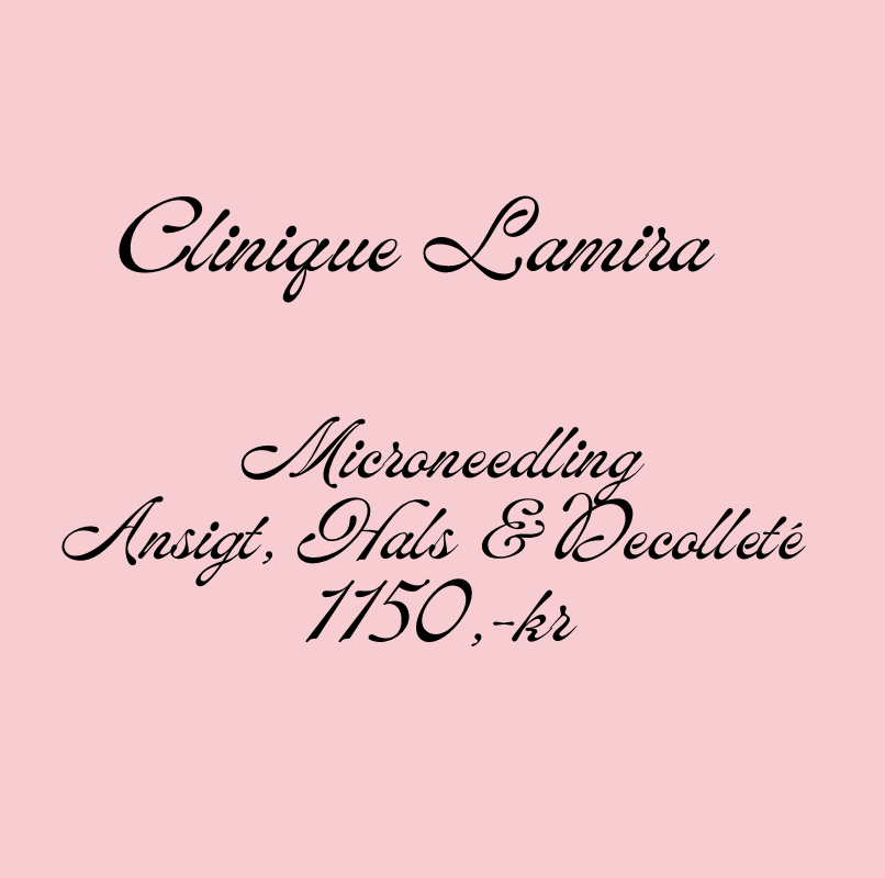 Microneedling som kur behandling.For bedste resultat, anbefaler vi et kurforløb på 3 behandlinger med 10 - 14 dages mellemrum.Microneedling er en behandling, der har fået stor popularitet de seneste år. Behandlingen består af små nåle, der kører gennem huden, for at lave små mikroskopiske huller, der får huden til at regenerere og danne ny collagen. Microneedling kendes under mange navne f.eks. Dermapen, SkinPen, E-Dermastamp m.fl. Fælles for dem alle, er selve behandlingen.Microneedling er en yderst effektiv behandling, til at forbedre hudens struktur, udglatte fine linjer og ar. Behandlingen booster din hud til at forny sig selv, hvorfor der opnås en smuk glød og en strålende hud.Vi behandler med Microneedling på ansigt, hals/decolté og på hænderne.Denne behandling er bl.a ideel til mindskning af porer, hvilket gør den enormt populær.